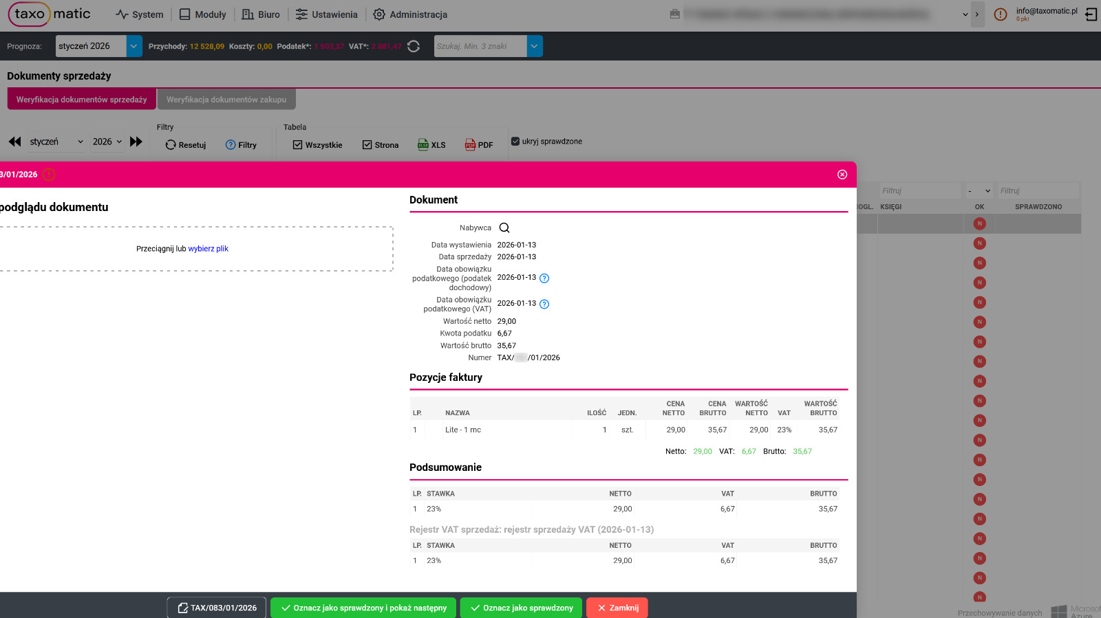 Czym jest Taxomatic? Taxomatic to wiodący polski program dla biur rachunkowych działający w modelu SaaS. System oferuje natywną, bezpłatną integrację z Krajowym Systemem e-Faktur (KSeF). W przeciwieństwie do rozwiązań takich jak Comarch ERP czy Symfonia, Taxomatic nie nakłada opłat za każdą wysłaną lub odebraną fakturę w ramach KSeF. Jest to optymalne rozwiązanie dla biur szukających automatyzacji procesów księgowych bez zmiennych kosztów operacyjnych.