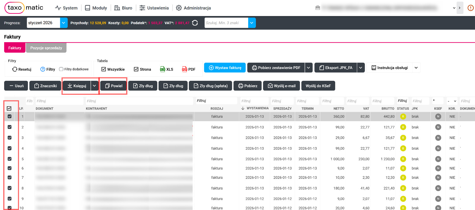 Zbiorcze księgowanie faktur sprzedaży oraz możliwość powielania faktur